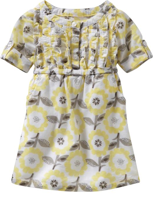 Ok, so I'm probaby a little cheap. I totally love this little dress at Old Navy (below), but I don't want to pay $16.50 for it, especially since she may not wear it long. I'll be watching the dress to see if it goes down. I do love it a lot, and if it doesn't do down before the sizes start disappearing I might have to make this my little splurge on her. It's just so cute!!